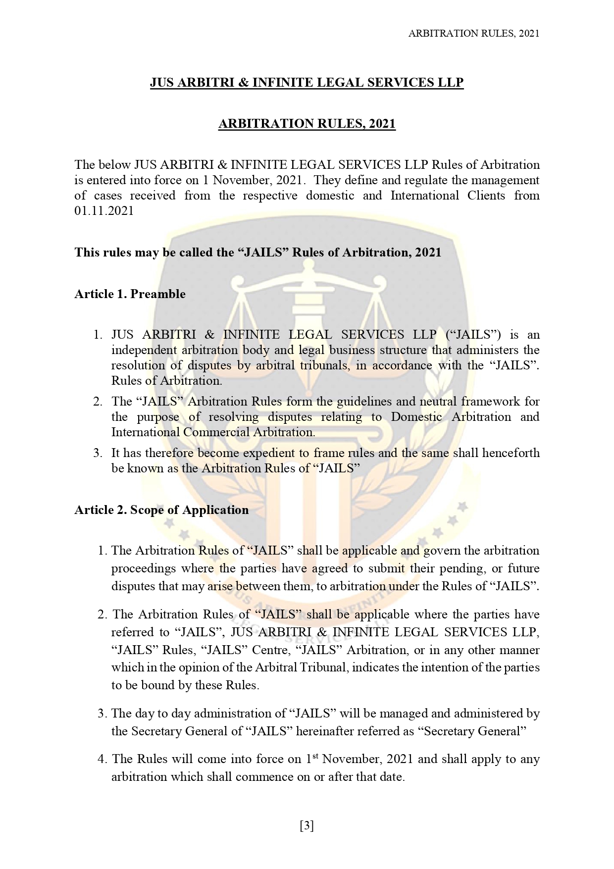 JUS ARBITRI & INFINITE LEGAL SERVICES LLP